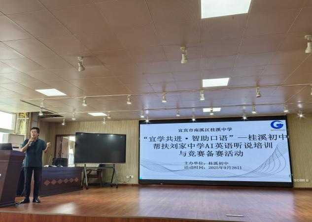 9月28日下午,南溪区初中教研第二学区2025年秋期AI技术赋能学生人机对话听说培训活动在桂溪中学举行。活动由区师训中心主办,桂溪中学与黄超名师工作室联合承办,学区各初中英语教师及工作室成员齐聚一堂,共同探索AI与英语教学的融合路径,为区域中小学生英语口语交流对话比赛精准筹备。 |