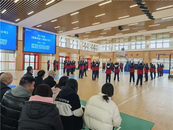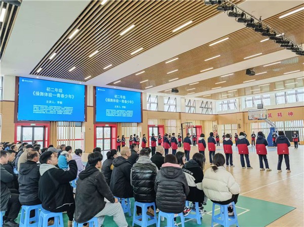 下午,室内篮球馆成为了活力与激情的舞台。李敏老师在此执教了《操舞体验——青春少年》公开课。课堂上,李敏老师以其阳光热情的教学风格迅速点燃了学生们的热情。