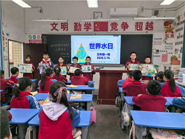 随后,各班组织召开主题班会。教师们借助生动案例与趣味科普内容,阐释水资源的宝贵以及日常节水的方法。