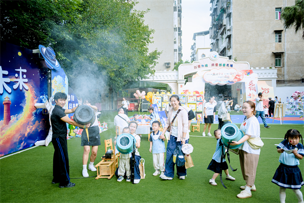金秋送爽,丹桂飘香。在中华人民共和国成立76周年、岳池县示范幼儿园建园70周年及中秋佳节来临之际,9月28日,该园以“七十六载盛世华章・七十春秋童梦飞扬・一轮清辉共团圆”为主题,举办了一场融合爱国教育、园所文化与传统节日的盛大庆典,全园师幼、家长及社会各界人士共聚一堂,同庆家国团圆。 上午9时,庆典在庄严的升旗仪式中拉开帷幕。消防指战员迈着铿锵步伐护送国旗入场,全场师生肃立高唱国歌,鲜艳的五星红旗与孩子们挥舞的小国旗交相辉映。皮园长在致辞中回顾了幼儿园70年的发展历程,强调“以爱为魂用爱创意无限”的办园理念;消防指战员代表则以“守护平安”为主题,为孩子们上了一堂生动的消防安全教育课。毕业幼儿代表、现任教师李昕遥动情分享:“从学生到教师,是幼儿园教会我以爱传递知识,以责任点亮未来。”家长代表大七班家长感慨:“这里不仅是孩子的乐园,更是我们全家共同的温暖记忆。” 文艺表演环节中,孩子们用舞蹈与创意诠释对祖国的热爱与对未来的憧憬。小朋友以《红红的太阳》萌动全场,该园体适能教练团队“问天少年”用航天舞演绎探索宇宙的梦想;川剧变脸、杂技表演等传统文化节目引得阵阵惊叹,小丑魔术秀则让欢笑声此起彼伏。教师团队以一曲《灯火里的中国》展现教育者的赤子情怀,全场齐唱《园歌》与《歌唱祖国》时,数百只红色气球腾空而起,将庆典气氛推向高潮。 下午的亲子游园会以“忆・展・望”为主线,打造沉浸式文化体验。时光长廊中,跳皮筋、滚铁环等怀旧游戏唤起家长童年记忆;国韵展区里,扎染、漆扇、活字印刷等非遗技艺让孩子亲手触摸传统文化;未来探索区则通过火山模拟、静电实验等科学项目激发好奇心。中秋摊位前,小朋友们领取月饼与牛奶,共享团圆滋味;时光纪念屋内,定制的建园70周年纪念品成为热门留念。 此次活动通过“升旗仪式铸魂”“园史回顾传薪”“节日民俗传情”三大维度,将爱国教育、文化传承与亲子互动深度融合。岳池县示范幼儿园以一场跨越时空的庆典,在孩子们心中播下爱国与文化的种子,让家国情怀与童真梦想共同绽放。(通讯员 熊怡) |