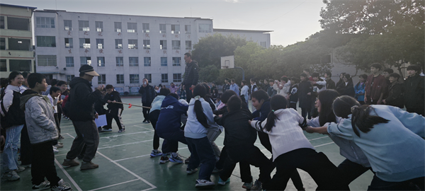 开幕式上,7个班级集聚操场,初一学子稚嫩却坚定,初二同学意气风发,初三学长沉稳昂扬,各班嘹亮的口号响彻校园。校长致辞鼓励同学们以拼搏诠释体育精神,随着发令枪响,各项赛事正式开赛。 赛道上,短跑选手如离弦之箭,中长跑健儿咬牙坚持;实心球场地,选手挑战新高,健儿舒展身姿。跳绳比赛中,单人跳选手手腕翻飞,跳绳如银蛇穿梭,双脚轻盈跳跃间刷新纪录;最激动人心的拔河比赛中,7个班级轮番对决,队员们紧握长绳、脚蹬实地,“一二、一二”的号子声整齐有力,班主任挥臂助威,啦啦队呐喊震天,绳索红线来回拉锯,尽显团队协作的力量。