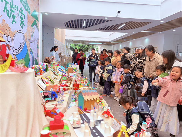 明幼倡导孩子们和爸爸妈妈一起利用废旧物品大胆创意作品,为其赋予新的生机。今日举办了“巧手筑春·守护地球”废旧材料创意作品艺术展,既变废为宝,又增进了亲子互动,让环保理念在家庭中延伸。