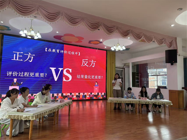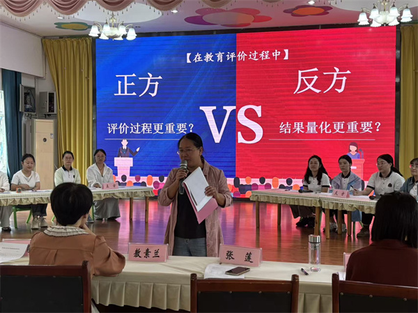 2025年9月30日,乐至县幼儿园成功举办了“问道·规·则”青年教师辩论赛。此次辩论赛不仅展现了青年教师的风采,也为幼儿园的教育事业注入了新的活力。乐至县幼儿园党支部书记、园长敖素兰与教学管理人员组成的评委组,以及各班没课的教师,共同见证了这场思维的碰撞和智慧的交流。 辩论赛围绕“教育评价过程中,评价过程更重要还是结果量化更重要”展开,正反双方青年教师依照赛制,呈现了一场思想与逻辑的精彩碰撞,辩论赛流程规范,环环相扣,充分展现了青年教师们的思辨风采。 乐至县幼儿园支委、副园长张莲点评:“老师们能将教育理论与教学实践深度融合,在辩论中充分展现了扎实的专业功底与敏锐的思辨能力。期待这份理论联系实际的智慧与深度思考的精神,能进一步融入日常教学,赋能每一次活动。” 敖素兰作总结性发言:“在这场精彩交锋的辩论赛中,我们不仅看到了青年教师的亮眼风采与深度思考,也看到了大家的思辨热情与探索精神。期望每位教师都能带着这份热忱与收获回归工作,让辩论中锤炼的能力赋能日常保教,共同为幼儿园教育品质的提升凝聚力量。” 此次活动,作为对接联盟“聚势创变 论道学前”辩论赛的园内预演与练兵,旨在提升教师专业素养,营造勤思善辩的教研氛围,是乐至县幼儿园积极响应成都都市圈学前教育联盟号召、主动融入区域学前教育协同发展的具体实践。未来,乐至县幼儿园将继续搭建多元平台,助推教师专业成长,为推动学前教育高质量发展不懈努力。(通讯员 康文靖) |