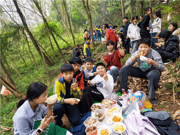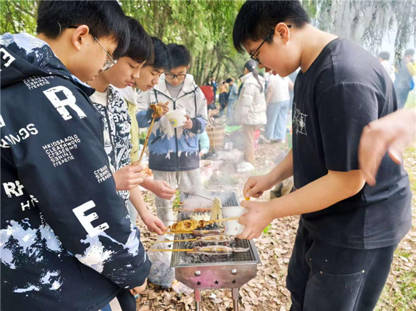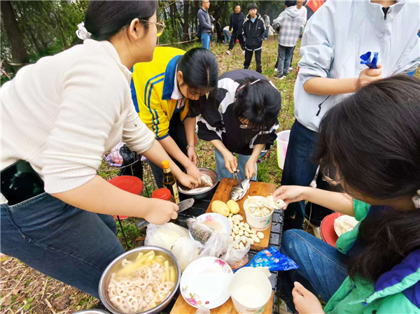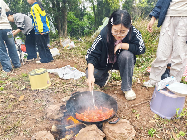 活动前期,学校周密部署,制定详细方案,明确路线规划、安全保障、人员分工与环保要求等。 当日上午,师生列队出发,一路欢声笑语,有序抵达天马乡东学村活动场地。学校结合学生年龄特点,实行分学段差异化实践:1—3年级开展温馨野餐;4—9年级开展自主野炊。 野炊现场热闹非凡,柴火噼啪作响,炊烟袅袅升起,锅碗瓢盆奏响劳动乐章。平日里专注课堂的学子,化身小小厨师,煎、炒、煮、炖各显身手,一道道家常菜陆续出锅。