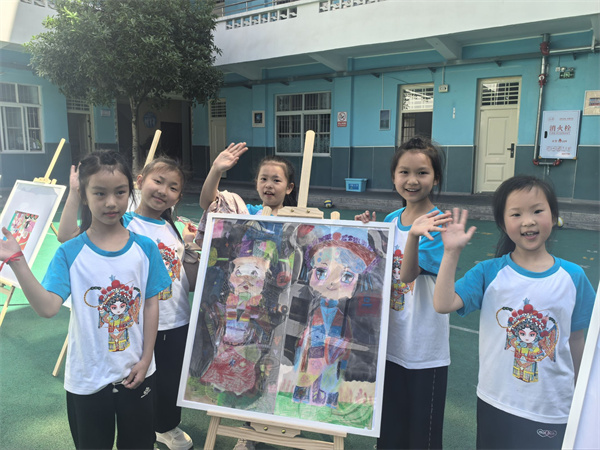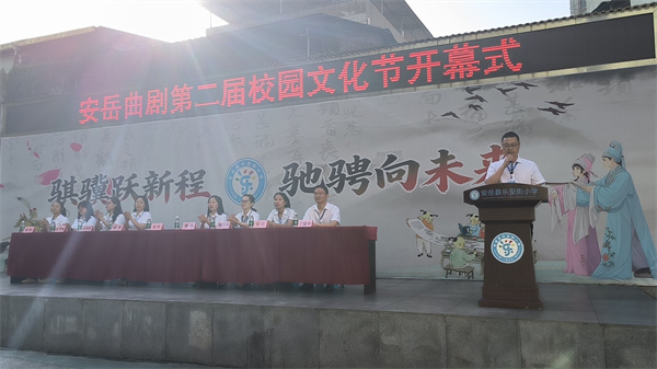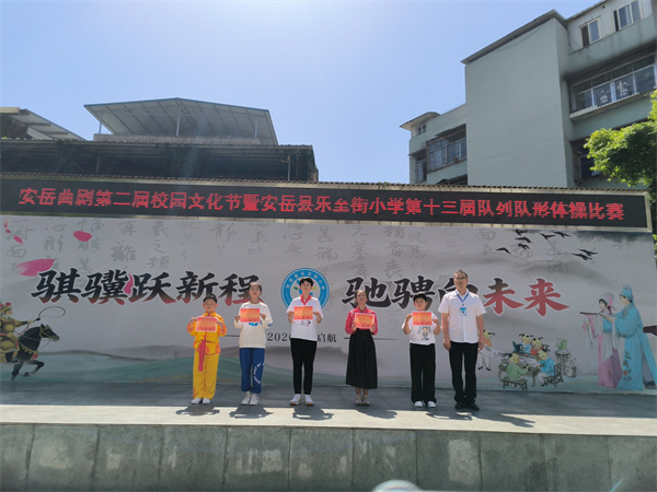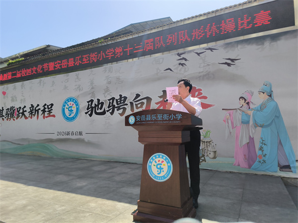 为落实“学生为本,健康第一”的教育理念,加强体育、美育深度融合,让孩子们“身上有汗、眼里有光、心中有爱”,身心健康发展,4月17日,安岳曲剧第二届校园文化节暨安岳县乐至街小学第十三届队列队形体操比赛在学校操场举行。 前操场,一幅幅孩子们创作的儿童水墨画,灵动地展现出孩子们眼中的安岳曲剧艺术。华丽的曲剧服装,引得孩子们注目,这样近距离触摸、感受传统戏曲服装的独特魅力,让孩子们很开心。赛场上,各班级队伍精神抖擞、步伐铿锵,伴随着激昂的音乐依次入场。同学们身着整齐的戏曲服装,喊着嘹亮的口号,迈着坚定有力的步伐,展现出团结奋进、积极向上的班级风貌。在队列队形展示环节,各班队伍变换灵活、整齐划一,每一个动作都凝聚着班级的凝聚力与向心力,每一次队形变换都彰显着同学们的默契与协作。曲剧广播体操,将安岳曲剧文化元素融入校园活动,让同学们在体育竞技中感受本土文化魅力,同学们动作标准规范、舒展有力,抬手、踢腿、转身、跳跃,每一个细节都一丝不苟,充分展现了乐至街小学学子良好的体育素养和昂扬的青春活力。随后,安岳曲剧市级传承人江依红给孩子们讲了安岳曲剧的历程故事,给孩子们留下了深刻印象。