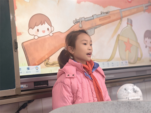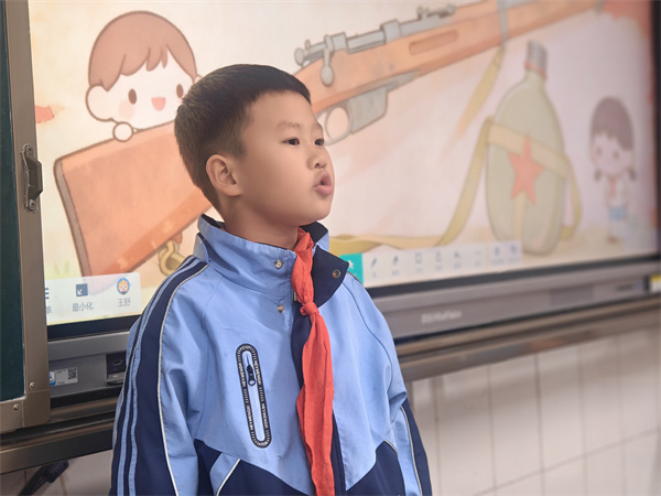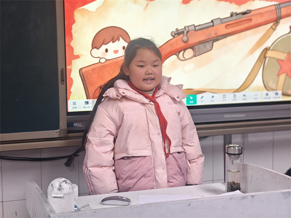 活动中,同学们踊跃登台,声情并茂地讲述了《小英雄雨来》《王二小的故事》《刘胡兰英勇就义》《闪闪的红星》等经典革命故事。有的同学还精心准备了道具和简单的服装,生动还原了革命年代的场景。 “以前我只知道英雄很厉害,今天自己讲完雨来的故事,才真正明白他有多勇敢!”学生王梓涵分享道。另一位同学陈昱函说:“我要向这些小英雄学习,现在好好读书,将来报效祖国!”