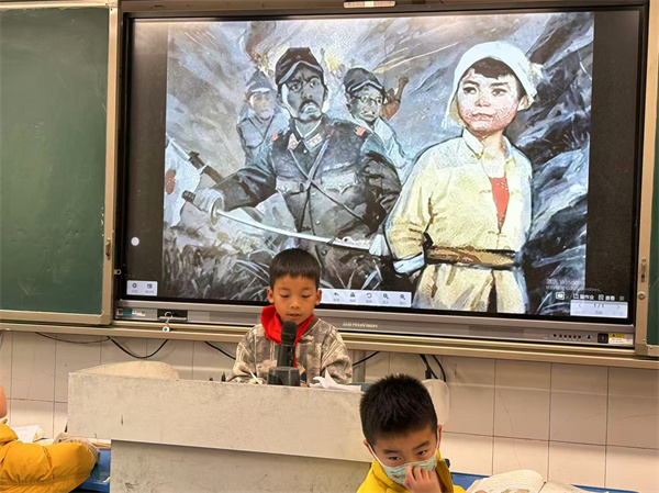 活动伊始,班主任带领同学们重温课文中的英雄片段,唤起大家对革命先辈的敬仰之情。随后的故事分享环节,孩子们踊跃上台,化身“小小讲述者”,声情并茂地讲述着各自准备的故事。他们用纯真的语言,将革命先辈坚定信念、无私奉献的精神娓娓道来,台下不时响起热烈掌声。