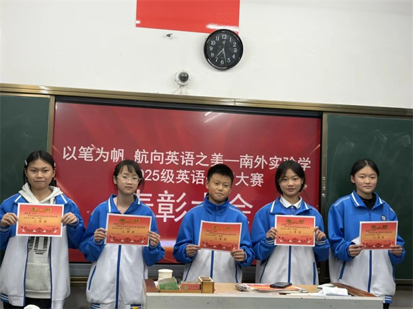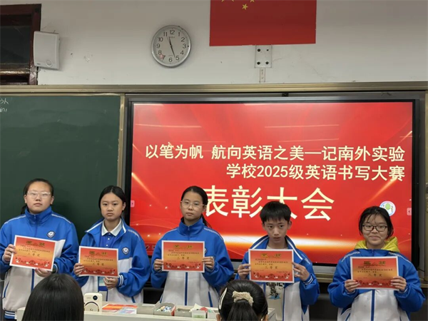 此次英语书写比赛,不只是一次技艺的较量,更是一次心灵的沉淀。它让同学们明白:书写,是学习的起点,也是品格的映照。愿初一年级的同学们,继续以笔为帆,以纸为海,在英语的世界里航行得更远,也在成长的路上,写得更加从容、更加明亮。(通讯员 汤晓蝶) |