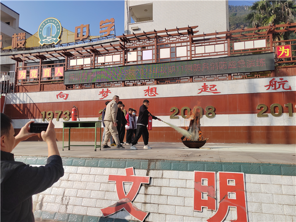 为帮助师生掌握灭火器的操作要领,提高处置突发火灾的能力,该校在本次演练中,开展了灭火器的使用培训。在培训中,安全办主任赵思友向师生详细介绍了发生火灾时使用灭火器的详细步骤,接着,让师生实践操作了灭火器,取得良好的效果。