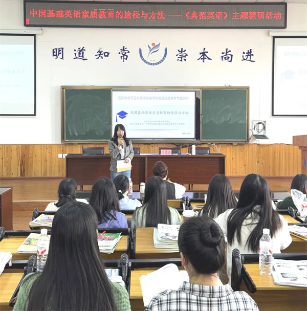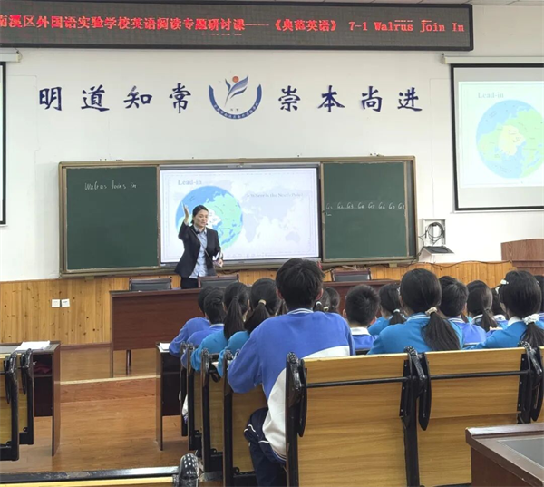 为进一步深化英语课堂教学改革,探索高效英语阅读教学路径,提升教师专业教学能力,助力学生英语核心素养全面发展,4月16日,宜宾市南溪区南外实验学校顺利举行《典范英语》英语阅读专题研讨课活动。 本次活动聚焦典范英语绘本阅读教学,通过优质课例展示、专家精准点评与专题讲座相结合的形式,为全校英语教师搭建了学习交流、教研共进的优质平台。 课堂展风采 教研促成长 练利敏老师率先带来《典范英语7》绘本课Walrus Joins In,练利敏老师以生动有趣的教学方式,紧扣绘本故事主线,通过情境创设、互动提问、角色感知等多样形式,引导学生走进绘本故事,感受英语语言的魅力。她充分挖掘绘本中的教学价值,注重培养学生的阅读兴趣、语言感知能力和思维能力,让学生在轻松愉悦的课堂氛围中主动阅读、大胆表达,呈现出一节充满趣味与实效的英语阅读课堂。