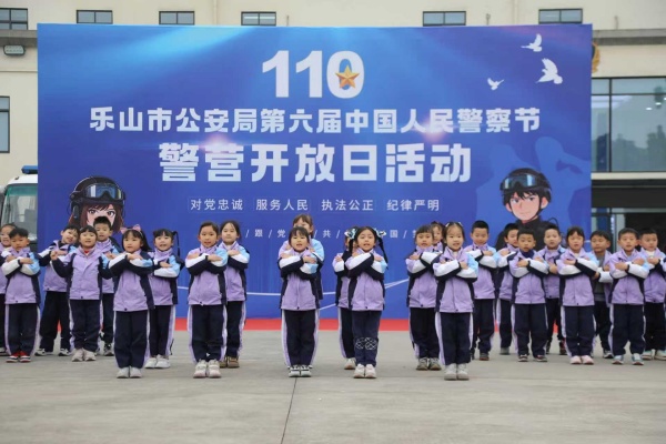 为庆祝中国人民警察节,1月15日,乐山市机关幼儿园乐艺分园100余名学生、教职工及家长走进乐山市公安局反恐特警支队营区,参加警营开放日活动。