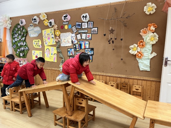 一场雨后与蜗牛的邂逅,让乐艺分园的孩子们开启了蜗牛的探究之旅——安家、观察、记录、放归,在与自然的互动中学会敬畏生命;普通桌椅在孩子手中变身城堡、轮船,重组的过程中,平衡、结构与合作的认知悄然建构;“小签到”升级为融合天气记录、心情表达与人数统计的综合活动,成为自我管理与思维启蒙的起点。从超市购物中的预算规划、图书馆创建中的规则制定,到桌椅游戏里的问题解决,幼儿园将幼儿的游戏兴趣转化为系统课程。