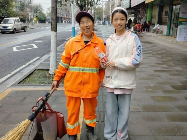 高段:走出校园,致敬“她”力量 高年级的同学们把目光投向了更广阔的社会。他们走出校园,走上街头,寻找那些在室外默默工作的女性劳动者——环卫工人、保洁阿姨、公安人员、外卖员…… “阿姨,节日快乐!您辛苦了,请喝口水吧!”,同学们双手递上自己准备鲜花和饮用水,向这些平凡而伟大的女性表达敬意。一位环卫阿姨接过鲜花,激动地说:“没想到还有人惦记着我们,太暖心了!”一次简单的问候,一份小小的礼物,让这个节日充满了温情与力量。 一句祝福,一张贺卡,一封信,一朵花,都是孩子们爱的表达。通过这次活动,感恩的种子在孩子们心中生根发芽,他们学会了尊重、懂得了珍惜,更明白了爱需要行动去传递。 愿每一位女性,都能被岁月温柔以待;愿每一个孩子,都能在爱与感恩中茁壮成长。 |