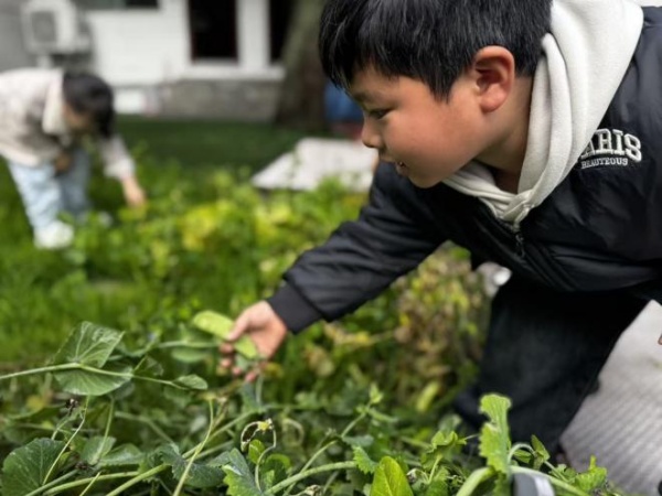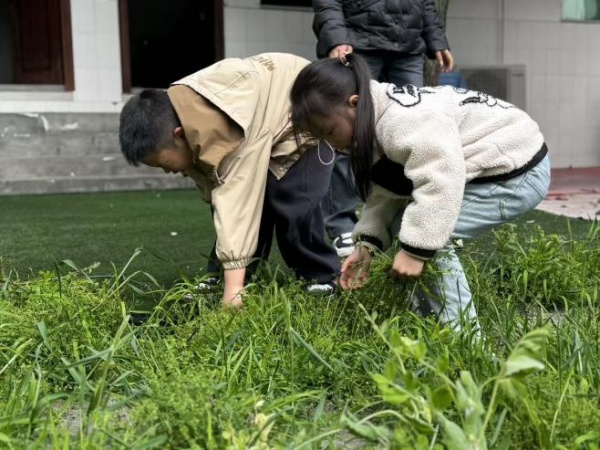 活动中,孩子们在老师的指导下,有序开展除草、松土工作,认真清理种植区的杂草杂物,为后续播种做好准备。同时,孩子们亲手采摘了种植区成熟的豌豆、胡豆,在收获的过程中,直观感受劳动的价值,体会“一分耕耘,一分收获”的深刻内涵。 收获过后,中大班幼儿开启了播种环节。孩子们手持花种、菜种,挖坑、放种、覆土、压实,每一个步骤都认真细致、有条不紊。孩子们纷纷表示,会定期来观察种子的生长情况,用心呵护每一颗小种子,培养了责任意识与爱护植物的情感。此外,中大班幼儿还与园内的大树开展互动游戏,通过“听大树的声音”“拥抱大树”等趣味形式,近距离感受树木的生长状态,学会敬畏自然、珍惜绿色。