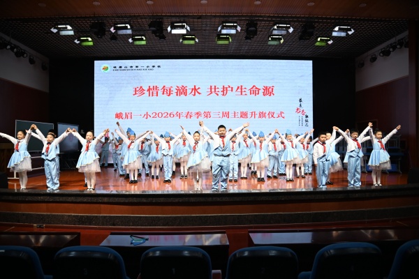3月16日,峨眉一小全体师生齐聚操场,举行“珍惜每滴水 共护生命源”世界水日主题升旗仪式,以沉浸式的展演与真挚的倡议,将节水护水的绿色理念深植师生心间。