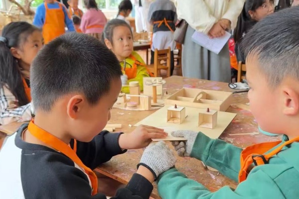 活动现场,户外搭建区的童真创造格外亮眼:孩子们用一瓦一砖构筑自己的游戏世界,将自然材料巧妙融入自主探索,让教育在生活场景中自然发生。教师的介入更是“进退有度”的艺术,既能在恰当的时机给予支持,又能充分尊重孩子的游戏主导权,真正做到了静心慢行、追随儿童。
