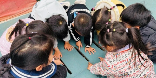 活动始于幼儿户外游戏的意外发现,孩子们被地面下水道洞口吸引,好奇的提问开启了这场趣味探索。孩子们在幼儿园里寻找各类洞洞,发现早操器械、衣物、玩具,乃至身体的鼻子、耳朵上,都藏着奇妙的小洞。
