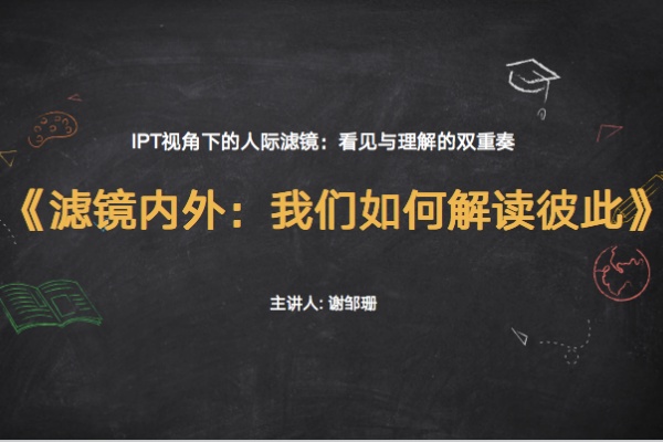 深挖根源:人际困扰的四大领域 谢老师结合人际心理治疗(IPT)理论,深入浅出地介绍了人际困扰的四大核心领域,即角色转换、人际冲突、哀伤和关系缺失,帮助同学们看见自己惯用的模式。同学们在听讲中频频点头,开始反思:“原来是因为还没适应新角色?”“原来那次争吵,是因为我们都在自说自话……” 实操指南:滤镜检查“三步法” 看见滤镜只是第一步,如何才能减少误会,建立更真实的关系?谢老师给出了具体的行动指南——“滤镜检查三步法”。 第一步:暂停标签 当情绪上头、想要给对方“贴标签”(如“ta就是针对我”“ta很冷漠”)时,先按下暂停键告诉自己:“这可能只是我的滤镜在起作用。” 第二步:旋转视角 尝试转动滤镜,换位思考:“如果我是ta,在那个情境下,我会怎么想?”透过对方的眼睛,或许能看到完全不同的画面。 第三步:事实着陆 从猜想回到现实,区分“我感觉到的”和“实际发生的”。以事实为依据进行沟通,而不是以情绪为导向。 这堂生动的心理课是一场关于自我与他人的深度对话。同学们学会了识别自己的惯用模式,也掌握了切换滤镜的方法。正如谢老师在课堂结尾中所寄语的那样,成长的路途漫长,让我们带着这份觉察,去拥抱更真实、更温暖的人际联结。 |