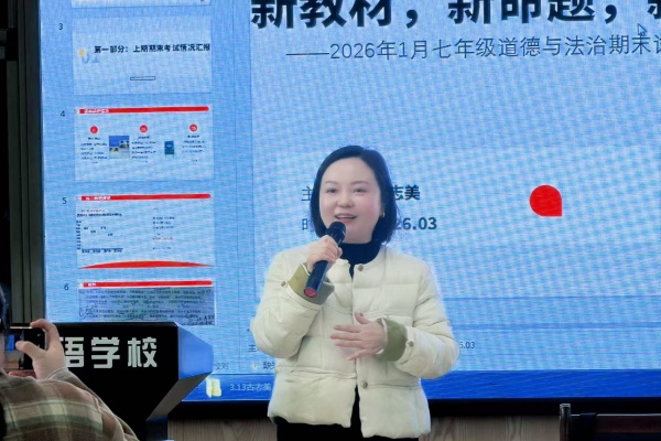 总结提升:擘画方向,聚力前行 学科教研员王明强作总结发言。他首先通报了2025—2026上期期末考试各项数据,结合详实的试卷分析报告,提出质量提升的深度思考。针对新中考改革,教研员详细解读了题型设置与分值变化,强调要把握命题规律,优化备考策略,在守正创新中推动学科教学高质量发展。 从“时政链接”到“素养落地”的课堂深耕, 从“外嵌”到“内生”的理念革新,从“严管夯基”到“实干提质”的实践坚守,从试卷分析的精准把脉到新中考改革的深度解读——每一个环节都是一次思想的洗礼,每一次交流都是一次专业的修行。初中道德与法治教师将继续深耕课堂、潜心育人,在立德树人的道路上且思且行,静待满树繁花。 |