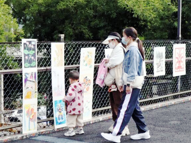 “我们给祖国染色,那一定是五星红旗的红!”伴随开场舞《我和我的祖国》,瞬间点燃现场,共同见证这条“空中跑道”变身为“艺术星河”的高光时刻。没有宏大展线,只有跑道旁一隅,却足够让来往市民停下脚步。本次展出的110幅作品,全部出自青羊区特殊教育学校与普通中小学孩子之手,笔迹或稚嫩或颤抖,那一撇一捺,线条与色彩,把“融合”二字写成了成都最动人的城市注脚。