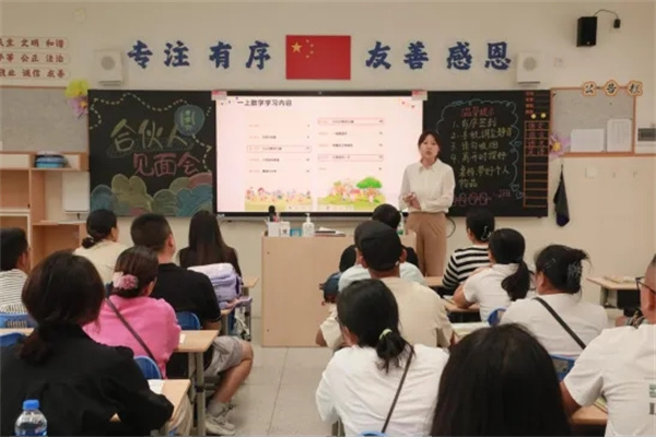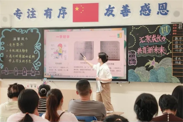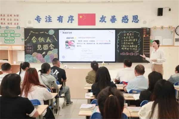 金秋送爽,暖意盈校。2025年9月26日,成都市双流区九江新城小学以“汇聚成长力,共育‘新’未来”为主题,召开2025级一年级家长会。这是萌娃们从幼儿园迈向小学的关键家校联动,更是老师与家长携手搭建成长桥梁、共绘育人蓝图的重要契机。 初见:以爱为约,认识“新家园” 午后两点,细雨轻敲校园,空气中满是清新,家长们满怀着期待有序走进各班教室。各班班主任率先登场,围绕“汇聚九力,通达江海”的校训,向家长们解读学校育人理念,让家长们对孩子的小学成长充满信心。紧接着,班主任不仅分享了自身教育经验与专业积淀,还逐一介绍了数学、英语、音乐、体育等科任老师,让家长们清晰了解师资团队的专业实力与教育理念。 与此同时,班主任还向家长们展示了一年级班级的整体风貌,分享了“习惯+兴趣”并重的一年级教育核心方向,坦诚解读孩子入学初期可能出现的适应问题,缓解家长的焦虑。此外,班主任还详细告知了学校作息安排、仪容仪表规范、座位轮换原则等日常事项,帮助家长和孩子提前适应小学节奏。 共探:聚焦学科,明晰“新方向” 围绕一年级学习的核心需求,语文、数学、英语三科老师依次展开学科讲解,为家长指引家校共育的发力点。语文老师围绕“基础积累与兴趣培养”,强调识字写字、拼音学习、阅读与口语交际的重要性,提出亲子共读和纠正孩子书写习惯等实用建议。 数学老师详细解读了从直观认知到逻辑启蒙的过渡要点,并建议家长:在孩子处于形象思维主导的阶段,可通过画画等方式帮助孩子打开思路,培养思维能力。 英语老师则以“趣味启蒙”为核心,分享激发孩子语言兴趣、营造家庭英语氛围的方法,助力孩子轻松开启英语学习之旅。 携手:共筑桥梁,凝聚“新合力” 家校同心,方能“育”见美好。在交流环节,班主任着重强调家校协作的重要性:一方面,建议家长理性看待孩子间的小摩擦,信任老师、积极沟通,共同维护和谐的家校氛围;另一方面,从交通、饮食、防溺水、传染病防控等维度,细致强调孩子安全与健康管理的关键要点,筑牢孩子成长的安全防线。 同时,班主任也向家长们发出“同行者”倡议,介绍家委会的组建意义与职责方向,邀请家长主动参与班级建设,凝聚家校共育的强大合力。 启航:以爱同行,奔赴“新未来” “一年级是小学的基石,更是孩子成长的重要起点。”家长会尾声,班主任以深情寄语收尾,强调家长与学校是孩子成长的“合伙人”,唯有家校携手、同向发力,才能为萌娃们的小学旅程保驾护航。 此次家长会,不仅拉近了家校距离,更明确了共育方向。相信未来,九江新城小学2025级的老师们与家长们,必将以爱为舟、以责任为桨,陪伴孩子们在小学的新征程上从容启航,向阳生长!(翁玉华 通讯员 薛雨欣 李韦妘) |