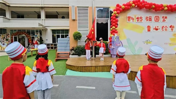 每一个惊奇的发现,每一次小小的探索都是在为“科技强国”的梦想悄悄播种。成都市锦江区风华幼儿园萌娃想做一颗亮晶晶的“小红星”,爱祖国,也爱这个有趣的世界!他们用线条与色彩,预演一场关于未来的奇迹。 在小班孩子的生活里“科技”是一位看不见却无处不在的好朋友,中班孩子们把心中的想象一点点粘出来,装上魔法手臂,就这样创造了一位特别的朋友。大班哥哥姐姐听过科学家们的故事后,拿起画笔和工具,决心要为祖国设计“最厉害”的武器! 活动当天,当全体方队集结完毕,便举行庄严升旗仪式,全体师生伫立在国旗下,升国旗,唱国歌,行注目礼。 孩子们的探索热情早已满溢,踏着装满智慧与创意的小脚步,朝热闹的科学游戏奔去。 《会跳舞的毛毛虫》 《水车转转》 《水上烟花》 《小帆船》 《彩虹雨》 《会吸球的瓶子》 《会跳舞的小人》 《会飞的蝴蝶》 《磁力寻宝》 《纸张大力士》 《空气炮》 《奔跑的狗尾巴草》 《看得见的声音》 《平衡鸟》 当探索的热情归于平静,收拾工具、整理场地便成了最后一项,也是最温暖的一项活动。 全园小伙伴已经行动起来,让桌椅迈着步子回家,趴下来寻找有没有“藏”起来的材料,把活动场地收拾得干干净净。 孩子们用好奇的指尖叩响科技的门扉,智慧的火花在实验中苏醒,他们以梦想为图纸,把勇气注入通往科技的隧道,所有今日的探索都化作奔向未来的光。(翁玉华) |