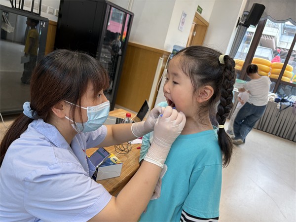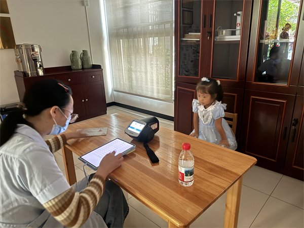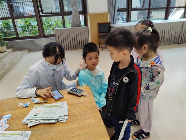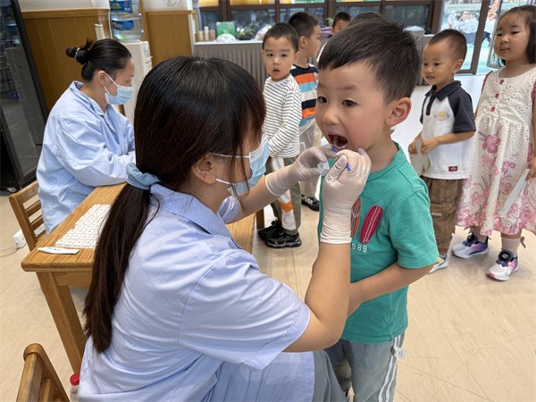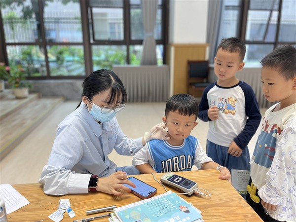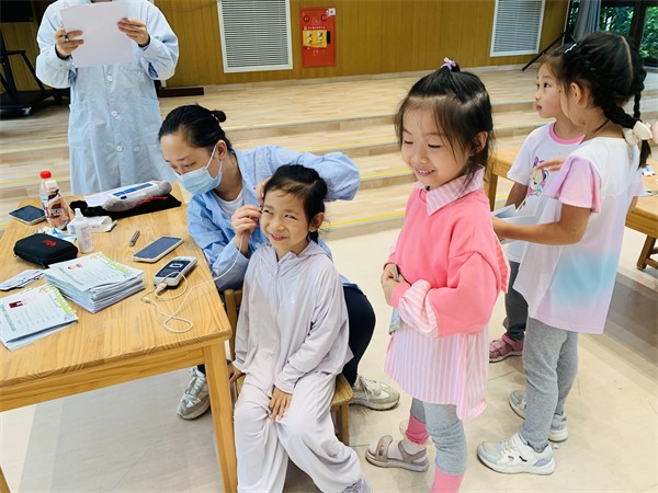 微风和煦,阳光正好。成都市青羊区天府幼儿园锦绣园的宝贝们迎来了一场特别的“探险”——秋季健康体检。穿着白大褂的医生们,带着温柔的笑容和专业的仪器,陪宝贝们开启了一场轻松又有趣的“健康小闯关”,快跟着镜头一起看看吧! 第一关:视力小侦探,守护“小窗户” “宝贝,坐好啦,准备好拍照了吗?眼睛看前方!”视力筛查室里,医生阿姨轻声引导着。宝贝们眼睛亮晶晶地盯着仪器,坐得可直了。医生仔细地给宝贝们检查眼睛的情况,确保这扇“心灵的小窗户”永远明亮。 第二关:听力小耳朵,捕捉“好声音” 听力筛查环节,医生阿姨拿出一个像小耳机的仪器,轻轻戴在宝贝们的耳朵上。这个环节会仔细检查宝贝们是否有听力异常,确保每一个“好声音”——无论是老师的故事、小伙伴的笑声,还是妈妈的叮嘱,都能清晰地传进宝贝的耳朵里。 第三关:牙齿小卫士,保卫“小珍珠” “啊——宝贝张大嘴巴,让阿姨看看你的小牙齿。”医生阿姨拿着棉签,温柔地查看宝贝们的牙齿。有的宝贝牙齿白白净净,得到了阿姨的夸奖;有的宝贝因为爱吃甜食,长了小小的“黑洞”,阿姨耐心地告诉宝贝:“要好好刷牙,才能把小虫虫赶跑哦。”提醒大家要爱护自己的“小珍珠”,让牙齿永远健康又漂亮。 体检不仅是对宝贝健康的“定期打卡”,更是幼儿园和家长共同守护宝贝成长的重要环节。医务人员会对每位幼儿检测的各项数据进行分析、评价,将体检的结果及时反馈给保健医生,也希望大朋友们能和锦绣园一起,把温馨小贴士记在心里,用细心和关爱,为宝贝的健康成长保驾护航!(孙林馨) |