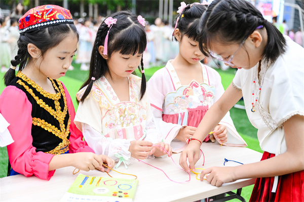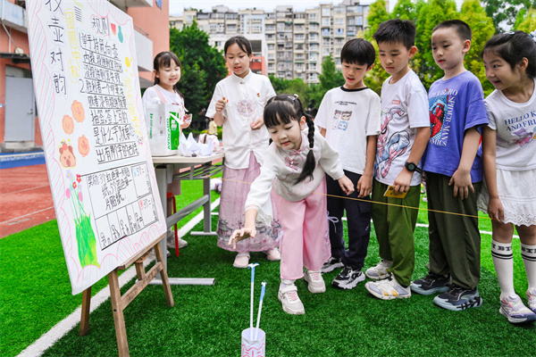 秋光绚烂,丹桂飘香。9月30日上午,成都市青羊实验中学附属小学的校园里,一场别开生面的“丹心映月,华彩同辉”庆双节游园活动拉开了序幕! 一大早,校园里就挂满了附小孩子们亲手制作的灯笼、书签和谜语卡片。猜灯谜区域人头攒动,孩子们或仰头思考,或互相讨论,不时爆发出猜中谜底的欢呼声。值得一提的是,不少附小娃穿上了精美的民族传统服饰,汉服、苗裙、藏袍……衣袂飘飘间,中华文化的多彩与包容悄然流淌。 在传统手工艺体验区,小小“非遗传承人”们正专注地展示着自己的巧手技艺。雕刻、折纸、扎染……每一件作品背后,都是附小娃们对传统文化的理解与热爱,也是附小一直坚持在做的——传承传统文化。大屏幕上实时播放着他们专注制作的画面,引来阵阵掌声。 投壶、画扇、编结……“国风游戏嘉年华”成了校园里最热闹的角落。附小娃们化身“传统文化推广大使”,在自己负责的摊位上热情介绍游戏规则,带领小伙伴们“玩转古今”。欢笑中,传统文化的种子悄悄种进了附小孩子们的心田。 在“赞祖国&赞你我”互动区,附小娃把对祖国的热爱、对同伴的鼓励写在一张张彩色的卡纸上,贴成一面温暖的“赞美墙”。不远处,“红色拼图”大挑战、“重走长征路”障碍赛、“祖国知多少”知识问答等环节,也让附小娃们在趣味挑战中加深了对祖国的了解与热爱。 这场游园活动,不仅是游戏的集合,更是一堂生动的“五育融合”实践课。附小娃在猜谜中学知识,在手工中练审美,在障碍赛中强体魄,在赞美中修品德,在协作中悟劳动。双节同庆,游园寄情,愿这份融合了家国情怀与文化自信的节日记忆,永远珍藏在每个附小娃的童年时光里!(赖波) |