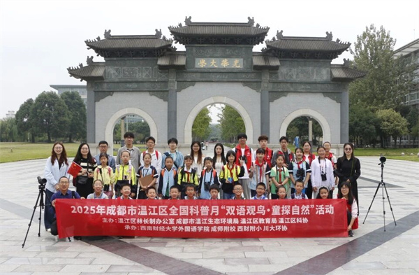 10月1日,成都师范学院附属实验学校和西南财经大学附属实验小学的师生们来到西南财经大学柳林校区,在西南财经大学外国语学院“润语”计划志愿者和四川大学环保志愿者协会的指导下,开展“双语观鸟·童探自然”——大学校园科学志愿领航行动活动。 成都师范学院附属实验学校参加本次活动的是第135科考队的队员,西南财经大学附属实验小学的同学则是首次参加观鸟活动。西南财经大学外国语学院“润语”计划是学院团委、学生会青年志愿者协会推出的系列志愿实践活动企划。四川大学环保志愿者协会是西部地区成立最早的高校环保社团,常年为该校观鸟活动担任向导。 秋季的西财校园空气清新,景色宜人。孩子们举起望远镜,在林间、草坪、湖畔寻觅着自然界的生机:潮湿的树干上长出大片的白色真菌,胡蜂好奇地在队伍里飞来飞去,家鸭悠闲地站在石头上栖息,珠颈斑鸠在草地上觅食,喜鹊飞来向孩子们“报喜”……最受孩子们喜欢的是艳丽的普通翠鸟,它静静地站在柳湖边,时不时钻入水中捕鱼。世界如此精彩,令孩子们不时发出欢呼和赞叹的声音。 师生们来到经世楼,参加观鸟主题的英语教学与体验交流活动。“润语”计划志愿者为孩子们讲解了鸟类知识所用的英文表达,小朋友们热情地参与问答。每位小学生都用英语准备了对鸟类的描述,进行了讲解分享。“润语”志愿者贴心地准备了小礼物,使得孩子们更加踊跃。 “日月光华,旦复旦兮”,参与活动的师生们在光华大学(西南财大原名)牌坊下拍摄了合影。“双语观鸟·童探自然”,让我们在美丽中国里愉快前行!(张红 通讯员 严国昊) |