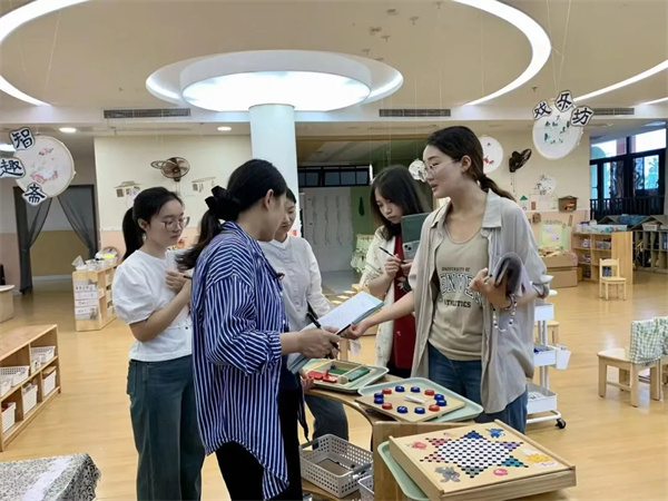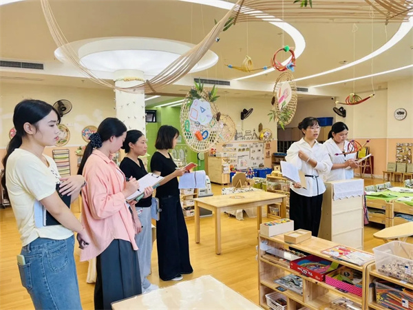 为深入贯彻共同让“环境育人”的理念,推动幼儿在与环境的互动中获得全面发展,同时为教师们搭建一个相互学习、共同提升的专业平台,成都市双流区怡心第九幼儿园(以下简称:怡心九幼)于2025年10月10日开展了以“‘环’抱童心,‘境’润环境——更好地支持儿童的学习与发展”为主题的环境创设评比研讨活动。 聚焦环境 深入研讨 本次活动以年级组为单位,分组开展,组内每个班级由一位教师担任讲解员,从班级整体环境打造思路、班级主题墙、班级记事录、区角环境与材料投放、植物角等方面向大家介绍了自己班级在环境创设方面的亮点和特色活动。教师们以专业的眼光和严谨的态度,从各个维度进行了细致的观察与评估。 共享智慧 凝聚共识 观摩结束后,教师们展开了热烈的分组研讨。大家就观摩中的亮点、发现的问题以及下一步的改进措施进行了深入的交流与思维碰撞。 在分享环节,各小组的中心发言人代表本组,将研讨的成果与思考进行了系统性的梳理和交流。她们不仅分享了各班环境创设中的独具匠心的“金点子”,也就如何进一步提升环境的教育价值提出了建设性的意见,为下一次的环境创设评比奠定了基础。这场分享不仅是一次成果展示,更是一次集体智慧的升华,为环境创设的改进提供启发。 本次环境创设评比研讨活动成功地为教师们搭建了互相借鉴、共同进步的桥梁,它不仅是一次评比活动,更是教师对标幼儿园班级环境创设评估指标,深入思考、交流、学习的契机。相信,通过老师们不断地优化与创新,环境将真正成为支持幼儿自然成长、快乐探索的沃土。怡心九幼将继续追随幼儿的脚步,让教育的痕迹浸润在环境的每一个角落,静待每一朵小花儿的绚烂绽放!(江蕾) |