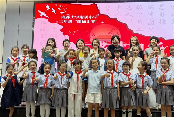金风送爽,国庆的钟声即将敲响。借此时机,成都大学附属小学(以下简称:成大附小)语文各年级组开展庆国庆学月活动,让爱国与学习之花绚烂绽放。 童声吟韵·诗启新章 一年级“童声轻吟”童谣朗诵活动以“点燃阅读兴趣”为宗旨,为孩子们搭建了从课堂走向舞台的实践平台。 本次活动紧扣语文教学主题,借助童谣朗朗上口的特点,有效激发学生的阅读热情,让孩子们在诵读中爱上文字、乐于表达。 笔绘丹心·礼赞华诞 二年级举行了“我给祖国妈妈送礼物”主题写话比赛,孩子们用稚嫩的笔触表达对祖国的热爱。一篇篇充满童趣的文字,饱含着孩子们对祖国妈妈的真挚祝福。活动不仅锻炼了孩子们的表达能力,更在他们心中播撒下爱国的种子,让红色基因代代相传。 礼赞祖国·声动校园 三年级的“礼赞祖国,声动校园”朗诵赛超热闹!9月19日,各班级先初赛,9月26日,学术报告厅决赛,超有仪式感! 小选手们超会玩!有的单枪匹马展风采,有的组队超默契,配音乐、带道具、搭背景……稚嫩声音超真诚,满是对祖国的爱! 文载鸿志·笔叙家国 四年级在爱国主题征文比赛活动中,老师们认真评选,同学们热情高涨,用质朴文字描绘心中祖国。有的书写对革命先辈的敬仰,有的抒发对祖国山河的热爱。真挚的文字传递出的是孩子们最纯真的爱国之心。 妙笔生花·少年抒怀 五年级学生们以工整美观的书写,一笔一划勾勒着对党和祖国的深情。字里行间洋溢着对祖国发展的赞美与欣喜。每一篇文章都像是一颗炽热的心,跳动着爱国的旋律,让人感受到年轻一代对国家和民族的强烈责任感与使命感。 思辨华章·青春寄语 六年级的少年们正以笔为媒,奔赴一场与祖国的“成长之约”。在“我与祖国共成长”征文比赛主题下,他们以稚嫩却真挚的笔触,描绘祖国的山河壮阔,书写时代的蓬勃脉动,诉说自己与祖国同呼吸、共成长的点滴故事。每一篇文字,都是少年们对祖国最炽热的告白;每一段书写,都是他们与祖国成长的铿锵印记。 此次国庆主题活动中,同学们以赤诚之心献礼祖国,未来定将砥砺前行,共筑华夏辉煌! 双节盛景同至,教师墨韵献礼 与孩子们精彩纷呈的活动同步开展的,还有学校教师书法大赛。老师们挥毫泼墨,以笔传情,在笔墨间共贺双节,尽显师者儒雅风采。 从一年级童声诵童谣到六年级笔墨叙家国,从学生们的赤诚书写到教师们的挥毫献礼,成大附小这场学月活动,以多样形式将爱国情怀种进童心。稚嫩表达与墨韵深情交织,既让语文学习落地生根,更让红色基因代代相传。这份与祖国同行的热忱,终将化作成长力量,助力少年们在时代浪潮中续写华夏新章。(赖波 通讯员 李若楠) |