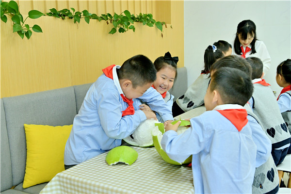 秋阳融融,笑语盈园。10月13日,成都市行知小学校“柿满枝头 柚香盈秋”主题采摘活动启幕。活动根据年级特点,分别为队员们设置了柿子与柚子的采摘体验,让他们在亲手实践中,触摸秋天,读懂自然。 三年级队员代表满怀期待地步入“心愈花园”,和高挂枝头的小柿子们打招呼。活动伊始,大队辅导员卓老师为队员们揭开了柿子树从春日生叶、初夏开花到秋日捧果的全过程,一堂简短的“自然笔记”就此完成。随后,队员们踮起脚尖,小心地拧下一个个“小灯笼”,金黄的柿子映照着他们自豪的笑脸。 二年级的队员代表则在“真美花田”进行了一场充满趣味的发现之旅。他们不仅学会了辨别柚子的成熟度,还通过互动环节了解了柚子的多种创意吃法,大开眼界。采摘结束后,队员们将柚子带回中队,在辅导员的组织下共同分享。 春华秋实,岁月成金。这堂行走在秋天里的劳动课,让队员们从课堂走向自然,从书本走向生活。他们收获的不仅是枝头的果实,更是对劳动价值的体认、对协作分享的感悟,以及一份滋养成长的宝贵养分。这段与秋日、与校园的甜蜜约定,必将成为照亮他们成长之路的温暖光芒。(魏雅莉) |