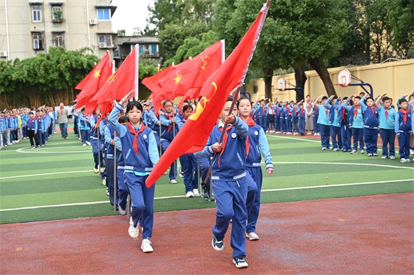 在中国少年先锋队建队76周年纪念日到来之际,成都市抚琴小学一段关于考核、仪式与担当的成长故事,正伴着“和雅”风,轻轻启章。 考核竞选:蓄力成长 晨光漫过课桌时,二年级学生指尖轻划“六知”,反复练系红绸,逐一审校队礼,把规范细细裹进掌心。 三至六年级大队委竞选风,拂遍校园每个角落,海报上,队旗旁题着“担责”,手绘校园图中标着“更新”,桂花枝缀满“护和雅”的愿。屏前,有人讲初心、奏队歌、说文明,投票的铅笔落下时,每一笔都藏着信任。 入队仪式:薪火相传 鼓点歇了,队歌先扬。指挥棒轻扬,队歌合唱里,少年精神满场。出旗曲漫过校园,队旗缓缓展开,秋阳把“准备着”的誓言,染得透亮,手臂举成幼松模样,接住76载的光。 书记寄语似春风:“让红领巾的红,漫过和雅路长。”红绸绕颈间,新老队员互敬队礼,“传承”与“担当”,在对视里悄悄流淌。 宣誓声郎朗,少先队员的信念与理想,稳稳落进心房。 大队委就职:责任在肩 36双眼睛里,闪着星星般的光——这是36份沉甸甸的责任,更是校园里的榜样力量。宣誓声中,鲜红的红领巾环绕颈间,它象征着少先队员的荣誉;闪亮的肩章标志佩戴在肩上,它代表了担当和使命。 “准备着,为共产主义事业而奋斗!”“时刻准备着”呼号声中,红领巾飘成朝阳的色,托着崭新的期望,在少年们的步履铿锵中,一步步走向着理想远方。(魏雅莉) |
