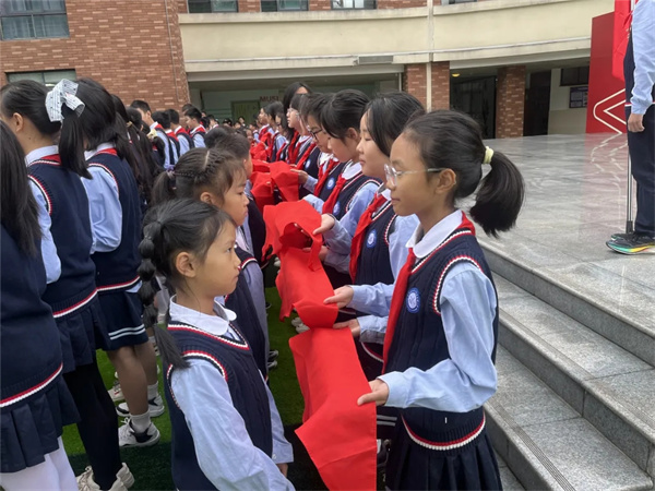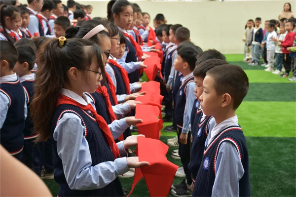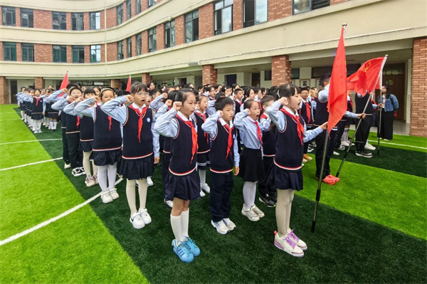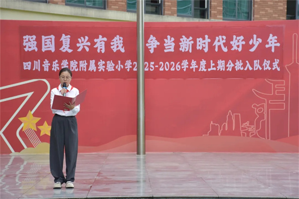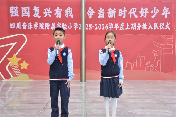 星星火炬,代代相传,队旗飘扬,歌声嘹亮。10月13日上午,四川音乐学院附属实验小学举行了以“强国复兴有我,争当新时代好少年”为主题的分批入队仪式。全校师生齐聚二楼操场,共同见证了一批新队员光荣加入中国少年先锋队的庄严时刻。 旗帜飘扬,初心如炬!在激昂的出旗曲中,入队仪式正式拉开帷幕。全体少先队员行队礼,齐唱《中国少年先锋队队歌》,嘹亮的歌声回荡在校园上空,传递着新时代少年的朝气与信念。 大队辅导员欧倩老师宣读了2025级新队员名单,祝贺他们光荣加入中国少年先锋队。六年级的少先队员们为新队员佩戴上鲜艳的红领巾。新队员们高举右手,敬人生中第一个队礼,一张张小脸洋溢着骄傲与自豪! 在欧倩的带领下,新队员举起右拳,庄严宣誓:“我是中国少年先锋队队员……”铿锵的誓言,回荡在校园,也回荡在所有少先队员心中,这份使命感将指引着我们不断向前! 在热烈的掌声中,学校党支部成员为新聘中队辅导员颁发聘书,佩戴红领巾,一份光荣的使命与责任在此刻传递。 “准备着:为共产主义事业而奋斗!”在大队辅导员铿锵有力的领呼下,全体少先队员齐声回应:“时刻准备着!”嘹亮的呼号声响彻校园,这是新时代少年坚定的承诺,对未来的期许,他们将以实际行动践行自己的誓言,努力成为合格的社会主义建设者和接班人! 在退旗曲中,入队仪式圆满落幕,火红的队旗缓缓退场,但信仰的种子已在每一位少先队员心中生根发芽。这不仅是一场庄严的仪式,更是一次精神的洗礼、一次理想的启航! 强国复兴有我,争当新时代好少年!愿每一位少先队员在星星火炬的指引下,茁壮成长,勇敢追梦,以实际行动为胸前的红领巾增光添彩,努力成长为担当民族复兴大任的时代新人!(翁玉华 通讯员 李慧 李琦) |