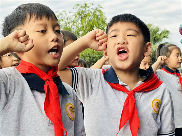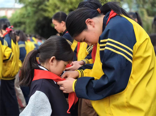 火红队旗高飘扬,弥牟小学62名新队员红领巾闪耀!