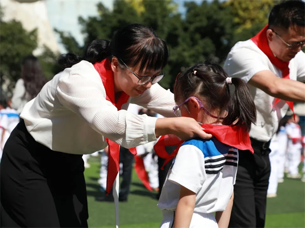 近日,成都市石室联合中学132学校(以下简称:石室联中132学校)开展了“强国复兴有我,争当新时代好少年”少先队建队纪念日主题活动,共同庆祝中国少年先锋队建队76周年。 在响亮的出旗曲中,旗手们踏着整齐的步伐,精神抖擞地进行着庄严的出旗仪式,建队日活动由此拉开序幕。队旗下,队员们齐唱队歌,铿锵的歌声不仅传递着对党、对祖国、对人民的热爱之情,更是对少先队未来的憧憬与期待。 在响亮的歌声结束后,副主任王雪颖宣读第二批入队新队员名单,每一个名字的背后,都是一份期盼和责任,也是坚定信仰的追随者。 最激动人心的传承时刻来临!石室联中132学校党总支副书记、校长王小兰,专职副书记张剑,副校长杨关银,副校长陈巍等领导,四、五年级少先队员为二年级新入队小飞侠们佩戴红领巾,这不仅是一条红领巾的传递,更是一份责任与精神的传承。 大队长代表王行惜带领队员们在队旗下宣誓。大队辅导员程舒婉老师对新队员提出希望和要求。接着,全体少先队员在程舒婉的带领下,一起紧握右拳,齐声呼号:“准备着,为共产主义事业而奋斗!”“时刻准备着!” 伴随着退旗曲的响起,活动圆满落幕,少先队员们再次肃立敬礼,目送队旗退场。 最后,全体大队委温情献礼,带来情景诗朗诵《关于红领巾的梦》。 星星火炬引路,伟大梦想领航,愿石室联中132学校的少先队员们在星星火炬的照耀下,奋勇向前!(江蕾) |
