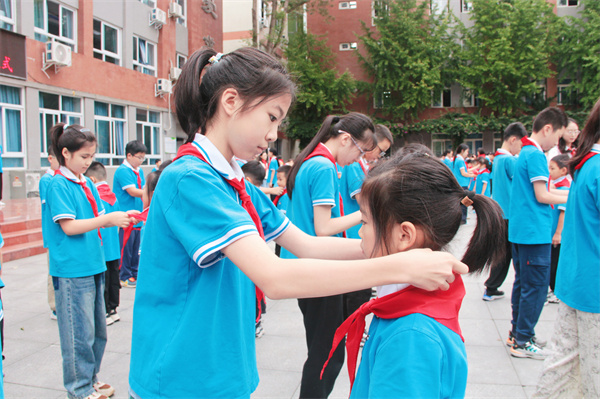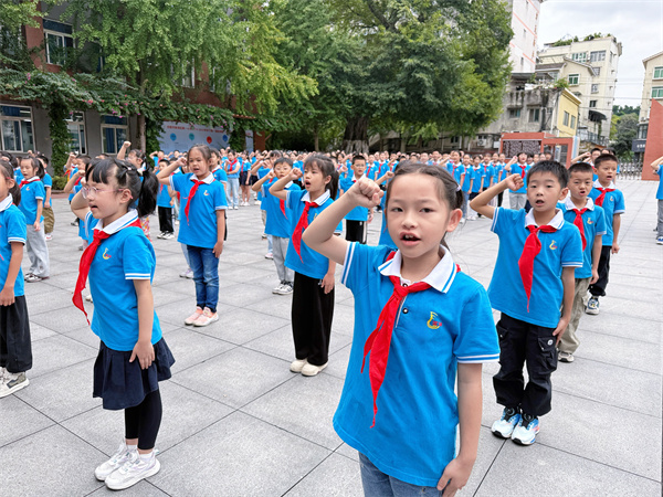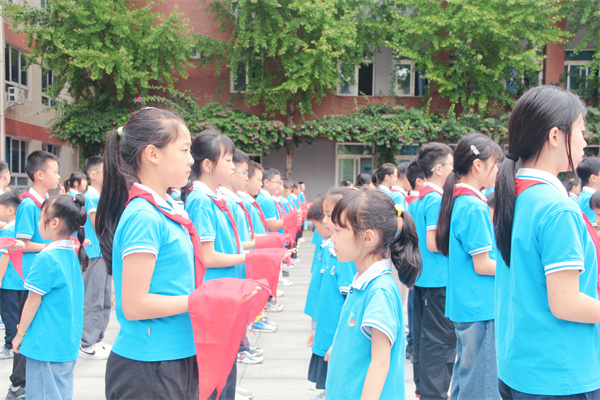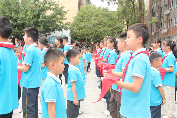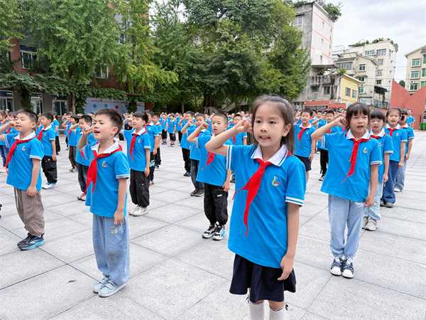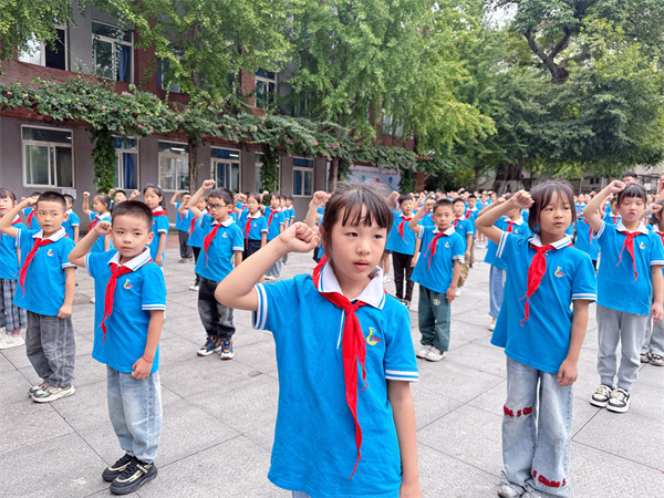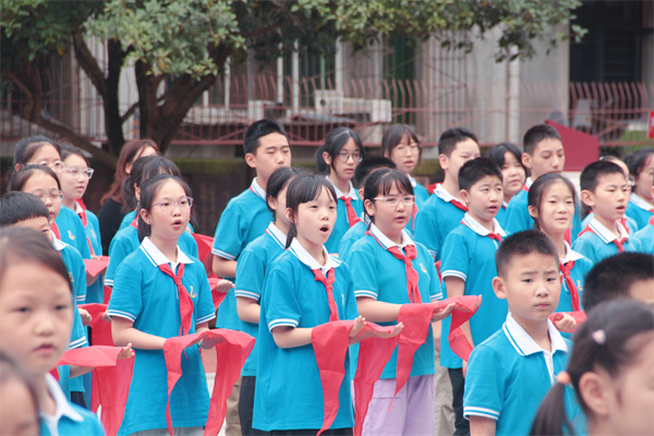 为纪念中国少年先锋队建队76周年,深入贯彻落实关于少年儿童和少先队工作的重要论述精神,引导队员们继承和弘扬少先队的光荣传统,增强少先队员的组织归属感与荣誉感,近日,成都市新津区第一小学举行新队员入队仪式,以庄严仪式为新队员开启成长路上的重要篇章,让红色信仰在新时代少年心中扎根。 仪式在嘹亮的出旗曲中拉开序幕。 大家齐唱《我们是共产主义接班人》。 大队辅导员王敬老师宣读新入队队员名单。 优秀老队员代表迈着整齐步伐上前,双手托起鲜艳红领巾,郑重系在新队员颈间,双方眼中满是激动与自豪。随后彼此互敬队礼,无声的敬意胜过千言万语,红色纽带紧连新老队员,让少先队精神在代代相传中生生不息。 在大队长的带领下,新队员高举右拳,庄严宣誓,铿锵的誓言回荡在校园,彰显着少年们的坚定信念。 仪式上,副校长张燕翔表达了对新队员真诚的祝福和对全体少先队员殷切的希望,她鼓励新队员在学习中勤奋努力、主动探索,牢记“勇于担当”并践行责任,希望少先队员们以严格的标准规范自己的行为,用实际行动为红领巾增添光彩! “准备着,为共产主义事业而奋斗!”“时刻准备着!” 入队仪式在响亮的呼号声中落下了帷幕,队员们怀着激动的心情,将红色记忆与时代使命深深镌刻在心中。 此次入队仪式,是一次光荣与责任的传递。在星星火炬的引领下,少先队员们必将不负期望,茁壮成长,时刻准备着为实现中华民族伟大复兴的中国梦贡献智慧和力量!(张红) |