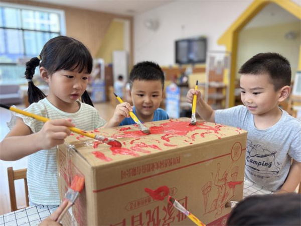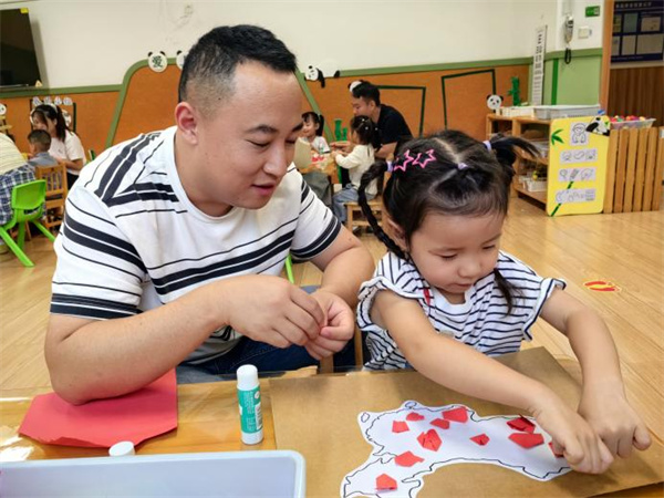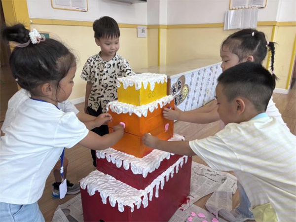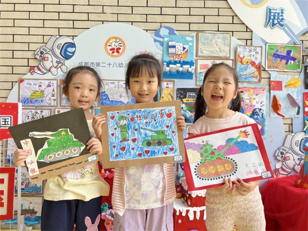 金秋送爽,丹桂飘香,为庆祝中华人民共和国成立76周年,成都市第二十八幼儿园翔润园(以下简称:成都二十八幼翔润园)开展了以“家国同庆·童心传承”为主题的国庆庆祝活动。以“成长”与“国庆”为关键词,各年级组同步开展特色活动。 小级组聚焦萌娃入园首月成长,开启亲子共育时光;中级组用创意致敬祖国,打造专属节日蛋糕;大级组以阅兵为灵感,用画笔绘出家国情怀,每个角落都洋溢着温暖与热爱。 大级组:观阅兵有感,画笔绘山河 看完庄严的阅兵仪式,大班孩子们心中满是震撼。他们决定以“海陆空”为主题,拿起画笔尽情创作。 一幅幅画作色彩鲜明、充满力量,不仅展现了孩子们眼中的国防力量,更传递出对祖国的崇敬与热爱。老师将孩子们的作品布置成“童心绘祖国”展区,成为幼儿园里一道亮眼的红色风景线。 中级组:纸箱变“蛋糕”,萌娃贺祖国 带着这份心意,中班的孩子们与老师开启了创意挑战。大家找来废旧纸箱,分工合作:有的负责裁剪纸箱做“蛋糕胚”,有的用红色颜料涂抹“奶油”,还有的用彩色胶泥做出了星星、花朵进行装饰。 经过一番忙碌,3个蛋糕惊艳亮相,引得孩子们阵阵欢呼。同时,孩子们还拿起胶泥,捏出一个个小巧可爱的迷你蛋糕,有的点缀着“五角星”,有的贴上自己的照片小人,每一件作品都充满童真与祝福。 小级组:成长初遇见,亲子共时光 入园一个月,小班萌娃们已悄然蜕变。在家长会上,老师们通过照片与视频,细数孩子们从“哭闹粘人”到“主动问好”、从“不会自理”到“尝试吃饭穿衣”的成长瞬间,家长们频频点头,眼中满是欣慰。 最温馨的环节当属亲子手工。在老师的引导下,家长与孩子默契配合,用彩纸、黏土制作出小国旗、国庆小灯笼。孩子们举着亲手完成的作品,兴奋地向同伴展示,小小的教室里,亲情与节日的喜悦交织在一起。 在这温馨美好的时光里,本次活动圆满落下帷幕。感谢每一位家长的积极参与,让我们共同期待孩子们在爱与陪伴中,继续绽放光彩,书写更多精彩篇章! 孩子眼里的爱国,也许是稚嫩的、童言啼笑的,但也是最纯真、炙热的。相信一颗爱国的种子,已在幼小的心灵里悄然种下,祝福伟大的祖国,永远繁荣昌盛。(李林) |