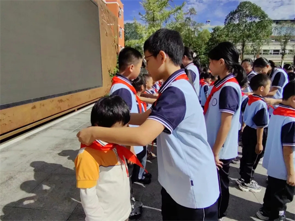 为弘扬伟大爱国主义精神与伟大抗战精神,引导少先队员努力成长为爱党爱国、勤奋好学、全面发展的新时代好少年,自觉传承红色基因、中华文脉与奋斗精神,四川天府新区特殊教育学校(以下简称:天府特校)开展了“强国复兴有我 争当新时代好少年”少先队建队纪念日主题活动。 “心系红领巾 做好引路人”:中队辅导员培训筑牢育人根基 学校于10月11日开展“心系红领巾 做好引路人”中队辅导员专题培训。培训过程中围绕少先队知识的核心要点,结合学生的特点,系统讲解了少先队组织架构、辅导员工作职责、主题队课设计方法以及如何在日常教学中融入红色教育等内容。参训辅导员们认真聆听、详细记录,积极参与互动交流,不仅深化了对少先队工作重要性的认识,更明确了自身角色定位与肩负的责任使命。 “学六知六会 做合格队员”:主题队课厚植爱国情怀 在建队纪念日来临前夕,学校各中队以“强国复兴有我 争当新时代好少年”为核心,开展了内容丰富的主题队课。队课聚焦少先队员“六知六会一做”核心要求,通过生动的图片展示、浅显易懂的语言讲解、情景模拟等方式,帮助队员们深入学习少先队知识,现场练习并掌握戴红领巾、敬队礼、呼号、唱队歌等规范流程,同时鼓励队员们在入队前主动为身边同学、老师或社区群众做一件好事,以实际行动践行少先队员的责任与担当。 此次主题队课,不仅让队员们重温了少先队的光荣历史与使命,更增强了他们作为少先队员的光荣感与责任感,让爱党爱国的种子在心中悄然扎根。 “队旗引方向 誓言诉初心”:联合入队仪式传递使命担当 10月13日,天府特校两校区分别与正兴小学、三星小学携手,举行了“强国复兴有我 争当新时代好少年”联合入队仪式,迎接新一批学生加入中国少年先锋队。仪式现场,队旗飘飘,队歌嘹亮。伴随着雄壮有力的出旗曲,旗手们手擎鲜艳的少先队队旗,迈着整齐而坚定的步伐入场,全场队员肃立敬礼,入队仪式正式拉开帷幕。随后,清脆而真挚的中国少年先锋队队歌在校园上空回荡,歌声中满是少年们的朝气与对少先队的热爱,激励着在场每一位少先队员铭记身份、奋勇向前。 来自正兴小学、三星小学的老队员们为天府特校新队员系上红领巾。在辅导员老师的带领下,新队员们举起右拳,庄严宣读入队誓言,展现出特殊少年们对责任的认知与对祖国的热爱。 此次少先队建队纪念日主题系列活动,不仅让天府特校中队辅导员进一步明确了育人使命,更让少先队员在仪式感与参与感中增强了光荣感和组织归属感。相信在星星火炬的指引下,少先队员们定能怀揣对祖国、对少先队、对红领巾的热爱,在成长道路上勇敢前行。(黄小林 通讯员 陈先琼) |