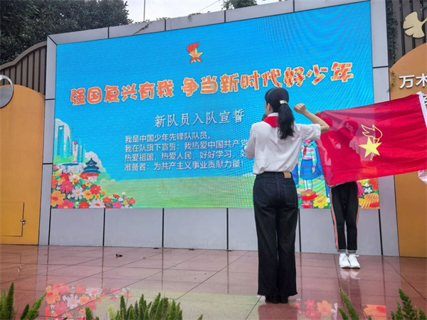秋光潋滟,朝阳灿烂。10月13日,一个属于全体少先队员的庄严日子——第76个中国少年先锋队建队日。成都市白果林小学的全体师生齐聚一堂,怀揣着希望与梦想,举行了“强国复兴有我,争当新时代好少年”建队日活动暨新队员入队仪式。 庄严开幕:整队报数,使命在肩 清晨的校园,气氛庄重而热烈。仪式伊始,主持人声音洪亮:“全体立正!”全体师生迅速整队,展现出昂扬的精神风貌。联合中队报数后,大队长报告“我们的活动已准备就绪,请您参加!”大队辅导员丁老师郑重接受报告,并预祝活动圆满成功。 入队仪式:光荣时刻,薪火相传 激昂的《出旗曲》奏响,三名少先队员迈着坚定有力的步伐,护卫着神圣的队旗入场。全体少先队员和辅导员庄严敬礼,目光紧随队旗,心中涌动着对组织的无限热爱与崇敬。随后,嘹亮的中国少年先锋队队歌在校园上空回荡。歌声中,是队员们坚定的信念,是新时代少年昂扬的斗志。 经过严格的入队标准和评价细则考核,并经学校少工委研究决定,邓妤晨、黄宇涵、赵奕忻、叶姵峣、杨梓钰、陈术一等30名同学正式加入中国少年先锋队。在大队委唐梓淇的宣读声中,30张稚嫩而兴奋的脸庞上写满了光荣与自豪。 最激动人心的时刻到来!优秀的少先队员代表们手捧鲜艳的红领巾,庄重地为新队员佩戴。新老队员互敬队礼,这一刻,光荣与传统在无声中完成交接。在大队辅导员丁老师的带领下,新队员们举起右拳,面向队旗,庄严宣誓。 新队员代表赵奕忻同学上台发言。她用稚嫩却坚定的声音,表达了对成为少先队员的无比喜悦和自豪,并表示将以大哥哥大姐姐为榜样,勤奋学习,关心集体,争做新时代的好少年。 学校党支部书记、校长、少工委主任何毅向全体新队员表示了热烈的祝贺,并提出了殷切的希望和要求。他鼓励队员们珍惜荣誉,爱护红领巾,在星星火炬的指引下,树立远大理想,培养优良品德,锻炼强健体魄,为实现中华民族伟大复兴的中国梦时刻准备着! “准备着,为共产主义事业而奋斗!”“时刻准备着!”在大队辅导员丁老师的领呼下,全体队员的呼号声震彻云霄,展现了白果林小学少先队员们的坚定决心。 大队委就职:扬帆起航 本学期,通过队员自愿申请、班级民主选举,学校德育处、大队部秉持公平、公正、公开的原则,最终评选出新一届大队委18名,中队委165名,小队委128名。大队辅导员丁老师宣读了新一届大队委名单。在热烈的掌声中,校长、副校长亲自为新任大队委们授予了象征责任与荣誉的大队委标志。 在庄严的《退旗曲》中,新队员入队仪式圆满结束。崭新的旅程已经开启,让我们带着这份光荣与梦想,出发!祝愿白果林小学校的全体队员们在星星火炬的指引下,健康成长,快乐飞翔,努力成长为能够担当民族复兴大任的时代新人!(魏雅莉 通讯员 黄芸) |