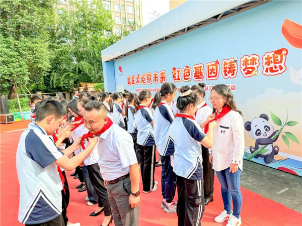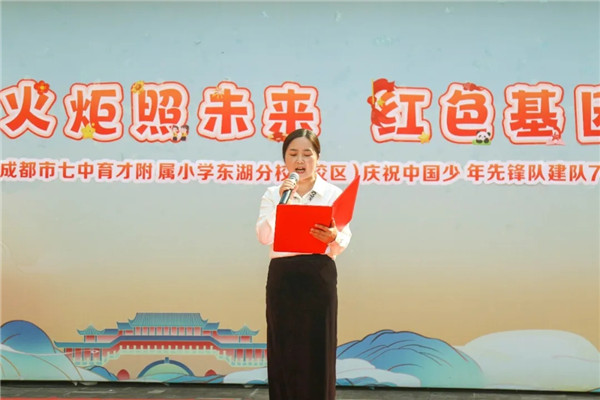 2025年10月13日,成都市七中育才附属小学东湖校区全体师生齐聚一堂举行“星星火炬照未来,红色基因铸梦想”建队日主题活动。 光荣时刻|领巾飘扬,誓言铿锵 在全体师生的见证下,第二批新队员光荣地加入了中国少年先锋队。 随后,由党员老师为新一届大队委员授标,在全校师生的见证下庄严宣誓。他们承诺将以身作则,服务同学,争做新时代的榜样先锋。 精彩展演|童心向党,艺彩飞扬 六(3)中队带来的少先队队仪展示,以规范整齐的动作、标准的队礼和嘹亮的呼号,展现出少先队员的英姿飒爽与组织纪律,彰显了少先队组织的庄严与光荣。 一个个精彩的节目,不仅赢得了阵阵掌声,更让红色基因在新时代少先队员中代代相传。 深情寄语|党旗引路,温暖护航 中队辅导员扈如意老师的“红领巾宣讲”,以深情的讲述带队员们穿越历史长廊,聆听那些闪耀的红色故事,让崇高信念在心中深深扎根。 党员教师代表带来了一场振奋人心的朗诵。他们用深情的语言,回顾光辉历史,寄语全体队员:珍惜时代,努力学习,争做有理想、有本领、有担当的好少年! 家校共育|同心同行,护航成长 德育处副主任李小弘向全体师生们公布了新一届校级家委会名单。随后,少先队员代表为家委会成员佩戴上鲜艳的红领巾,以少先队最崇高的礼仪,致敬这群温暖的“校外伙伴”。校长薛芸、副校长喻晓琴为家长们颁发聘书,赋予他们作为教育同行者的光荣使命。 家委会代表刘伟在发言中向全体队员表示祝贺,并对老师们的辛勤付出致以诚挚感谢。他们承诺,将始终做学校坚定的同行者、老师可靠的支持者、孩子温暖的守护者,携手共建家校桥梁,共同护航孩子成长。 愿队员们在星星火炬的指引下,热爱祖国、勤奋学习、锻炼自我、勇敢追梦,努力成长为能够担当民族复兴大任的时代新人!(江蕾 通讯员 张婷) |