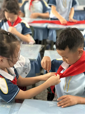 当鲜艳的红领巾飘扬在胸前,当誓言响彻校园,一群稚嫩的脸庞迎来了人生中极具意义的时刻——入队。从“六知六会”的知识播种,到实践闯关的能力锤炼,再到建队日当天的庄严宣誓,每一步都满含对“少先队员”身份的向往,让红色基因在童心深处扎根。 六知六会主题宣讲,大队委进班送“干货” “同学们,队旗上的五角星代表什么?敬队礼时手掌要怎么放?”大队委们佩戴着鲜艳的红领巾,化身“红色小讲师”,走进二年级教室开展“六知六会”主题宣讲。 入队实践大闯关,锤炼少年本领 理论学得扎实,实践更要过硬!校园里的“入队实践闯关区”热闹非凡,同学们拿着闯关卡,兴致勃勃地迎接挑战。 建队日,庄严仪式铸信仰 仰望飘扬的五星红旗,是无数先烈用生命染就的信仰,胸前鲜艳的红领巾,正是这份信仰的延续。 10月13日,成都市实验小学文苑分校举行“强国复兴有我 争当新时代好少年”庆祝中国少年先锋队建队76周年主题队日活动。 ·出旗,唱队歌 旗手迈着整齐的步伐护送队旗入场,全体师生肃立敬礼。鲜红的队旗在阳光下格外醒目,嘹亮的中国少年先锋队队歌响彻校园。 ·启程入队,领巾飘扬 依据入队标准和评价细则,经学校少工委研究决定,共有75名新队员加入中国少年先锋队,少工委副主任任昌武现场宣读新队员名单。老队员们有序走到新队员面前,郑重地为他们系上红领巾。新老队员互敬队礼,鲜艳的红领巾在胸前飘扬,一抹抹红色如同星星之火,传承着少先队精神。 ·铮铮誓言,回声嘹亮 这一刻,光荣而又隆重!在鲜艳的队旗下,大队长带领新、老队员齐宣誓。全体少先队员昂首挺胸、高举右拳,铿锵有力的誓言让使命感在心中升腾;稚嫩的童声,认真承诺着为共产主义事业贡献力量。 ·领航之音,铿锵呼号 少工委副主任黄李梅向新队员们表示祝贺,并提出了殷切希望,鼓励大家以红领巾为荣耀,以队旗为指引,从小树立远大理想,从身边的小事做起,培养良好的品德习惯,勤奋学习知识,锻炼强健体魄,争做强国好少年。“准备着,为共产主义事业而奋斗!”“时刻准备着!”嘹亮的呼号声在操场上久久回荡,铮铮誓言是担当,是信念,更是队员们前进的不竭动力。 伴随着退旗曲铿锵有力的节奏,成都市实验小学文苑分校“强国复兴有我 争当新时代好少年”庆祝中国少年先锋队建队76周年主题队日活动落下帷幕。 从知识宣讲到实践闯关,从庄严宣誓到殷切嘱托,愿这群文苑少年,带着这份光荣与责任,在少先队的旗帜下,勇敢追梦,成长为有理想、有本领、有担当的新时代好队员!(赖波 通讯员 苏艳妹) |