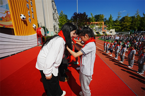 金秋送爽,队旗飘扬,衣冠楚楚,书声琅琅。近日,成都市温江区和盛小学校全体师生齐聚校园,举行了中国少年先锋队建队日活动与一年级“开笔礼”启蒙仪式。两个庄严而温馨的庆典交织,共同为孩子们上了一堂关于传承、成长与启航的开学第一课。 星星火炬,引领成长 在庄严的队歌声中,建队日活动拉开了帷幕。全体少先队员神情肃穆,胸前鲜艳的红领巾格外耀眼。校长在致辞中勉励全体队员,要铭记队旗下的誓言,继承革命先辈的光荣传统,从小学先锋、长大做先锋,努力成长为能够担当民族复兴大任的时代新人。整个仪式充满了光荣感和使命感,红色的种子在孩子们心中深深扎根。 朱砂启智,开笔破蒙 与此同时,一场古韵飘香的一年级“开笔礼”也在同步进行。孩子们在老师的引导下,亲身体验了中华民族传统的启蒙教育仪式。 正衣冠:童蒙之学,始于衣冠。孩子们正衣冠,寓意求学的端正与整洁。 朱砂启智:老师用朱砂在学子们的额头正中点上“聪明痣”,祝福孩子眼明心亮,好读书、读好书。 击鼓明志:铿锵有力的鼓声传递着孩子们的远大志向,每一声震天鼓响都孕育着一个崭新的希望。 启蒙描红:一撇一捺,立于天下。孩子们和班主任老师一同认真地书写下一个大大的“人”字,深刻领悟“做人先立身”的道理。 这场融合了传统文化与时代精神的典礼,不仅为少先队员注入了前行的力量,也为一年级新生开启了智慧之门。它象征着学校教育薪火相传,也展现了全体师生继往开来、共创辉煌的决心。 愿和盛小学的孩子们在未来的日子里,与智慧相伴,与快乐同行,在学校五自教育的沃土上,茁壮成长,筑梦远航!(张红) |