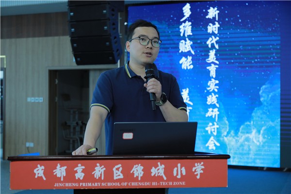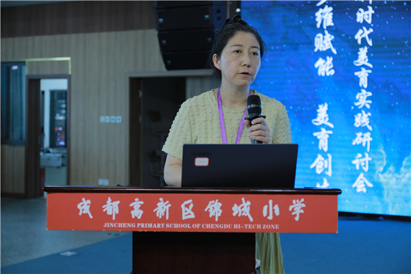 美育,是通向未来教育的桥梁,更是塑造民族灵魂的工程。在“五育并举”的时代强音下,美育课程如何超越技能传授,走向素养内生?如何连千年文脉,赋能未来公民? 10月15日,成都高新区锦城小学以文化为根脉,以课程为土壤,以未来为向度,开启一场以“多维赋能 美育创生”为主题的教育新探索。 锦城小学黄函老师主持 参与本次实践探访的不仅有云南省2025年学校美育能力提升培训州市能力提升班的成员,还有2025年成都市中小学校长培训班、成都高新区李雪梅名校长工作室、成都市“优师天府”结对学校、乐群教育联盟校的众多教育同仁。 序章·校园漫步——浸润美育之境 美育的种子,根植于环境的土壤。与会嘉宾实地探访了锦城小学——这所将文化传承基因、创新思维火种与自然生态之美深度融合的校园。校园空间突破传统功能定位,通过建筑景观、文化装置、生态区域的有机整合,构建起立体化的校园文化体系,形成“五育融合”的沉浸式育人场域。在这里,每一处空间都转化为动态的美育载体,形成多点联动的教育生态,让美育在真实场景中自然生长。 赋能·课程建构——悦美照亮未来 成都高新区锦城小学党支部书记、校长李雪梅作《美育,为未来小公民赋能》主题报告,从溯源、践行、成效三大板块阐释“悦美课程”从理念到实践、从管理到课堂、从学科到融合的顶层设计与实施路径。 |