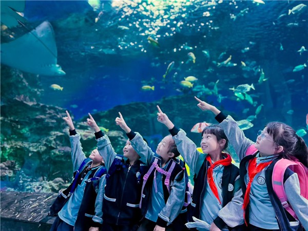 近日,成都市龙舟路小学一场跨越课堂的奇妙之旅,正悄然开启…… 一年级·浩海立方:小小海洋探险家 在拥有吉尼斯纪录的40米巨幕观景窗前,龙舟路小学一年级的同学们正在仰望蝠鲼翩跹、海龟悠游,仿佛置身深海IMAX。他们轻触海星,漫步海底隧道,与鳐鱼“击掌”,在触摸与观察中,感受生命的温度与海洋的辽阔。一场“人鱼共舞”的表演,更让想象力随波光荡漾。这一天,他们不仅是观众,更是温柔而好奇的海洋守护者。 二至五年级·极地海洋公园:探秘蔚蓝,守护家园 从南极企鹅的憨态,到北极熊的威武;从鲸豚联盟的智慧演绎,到海底隧道的静谧穿梭,同学们在极地与深海之间自由穿行。他们思考全球变暖对极地的影响,聆听海豚回声定位的奥秘,也在人鱼童话中种下浪漫的海洋梦想。这是一堂没有围墙的生态课,让守护海洋的种子,在眼中发光,在心中扎根。 六年级·天府邛州行:勇气、泥土与团队之歌 在丛林高空挑战中,他们系紧安全绳,迈出颤抖却坚定的那一步——那是勇气在生长。 在邛窑陶艺体验中,他们轻抚千年陶土,捏塑出独一无二的作品——那是文化在指尖苏醒。 在团队拓展游戏中,他们默契配合、彼此鼓励,共赴同一个目标——那是集体的力量在闪耀。 这个秋天,龙舟路小学的孩子们以双脚丈量世界,用双眼收录自然。每一次出发,都是为了更好地回归;每一次体验,都在书写成长的序章。(江蕾) |