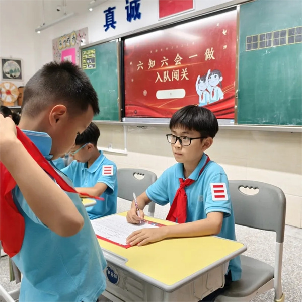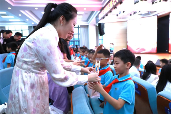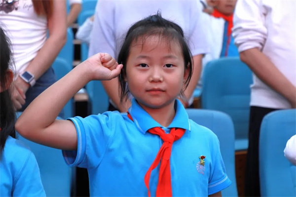 为增强少先队员光荣感和组织归属感,引导少年儿童听党话、跟党走,自觉培育和践行社会主义核心价值观,2025年10月17日,四川天府新区第七小学举行2024级分批入队仪式,144名同学光荣加入中国少年先锋队,正式成为少先队员。 出队旗,唱队歌 仪式在庄严的出旗曲中拉开帷幕,全体少先队员行队礼,预备队员行注目礼,火红的队旗承载着红色信仰,指引着少年们的成长方向。 全场高唱《中国少年先锋队队歌》,队歌嘹亮,唱出决心;队旗飘扬,指引方向。 宣读入队决定与入队名单 为帮助预备队员深入了解少先队知识,筑牢思想根基,学校大队部联合二年级各中队辅导员开展全方位、多形式的队前教育活动。以主题班队会为载体,中队辅导员围绕少先队“六知六会一做”核心内容,确保每位预备队员都能熟练掌握少先队基本礼仪与技能,激发他们对加入少先队的向往与期待。 为确保入队队员的综合素质,学校大队部于10月10日对2024级第二批预备队员开展入队闯关活动,坚持公平、公正、公开原则,切实把好“质量关”。考核结束后,结合班级推荐意见与综合结果,经审核,最终确定144名预备队员符合入队标准。 大队辅导员孙浩威老师庄重地宣读了新一批少先队员的入队名单,当一个个新队员的名字出现在大屏幕上,孩子们骄傲自信回答“到!” 这一刻对于他们来说意义非凡,意味着正式加入了光荣的少先队组织,肩负起了新的责任和使命。 戴巾仪式 老队员为新队员佩戴红领巾和队徽,新老队员互敬队礼。望着胸前飘扬的红领巾,新队员们脸上绽放出自豪而喜悦的笑容。家长们也送上了诚挚的祝福,“从今天起,你就是光荣的少先队员了!” 少先队大队长带领新队员宣誓 全体队员紧握右拳,面对鲜艳的队旗,庄严宣誓!从今天起,他们是光荣的少先队员,用行动践行“请党放心,强国有我!” 党员教师寄语 天府七小党支部宣传委员甘敏老师在致辞中表达了对新队员们的衷心祝贺,并提出殷切希望。她勉励新队员珍惜少先队员身份,树立远大志向,希望新队员们能在少先队的组织里锤炼品德,锻炼自我,传承红色基因,赓续红色血脉,成为党的红孩子,做新时代的好队员。希望新队员们从小学先锋、长大做先锋,努力成长为堪当强国建设、民族复兴大任的栋梁之材。 诗歌朗诵,传承精神 红旗一角的一抹红,是无数革命先辈用热血染就的颜色,今天的誓言,是同学们对队旗的承诺,更是对“不朽精神”的传承。 老师们用一首《不朽》,把这份跨越时空的精神力量,讲给孩子们听,传递那份永远不会褪色的信仰与力量! 呼号 在铿锵的呼号声中,全体队员以挺拔身姿回应时代召唤。 合唱《向上吧,少年》 同学们一同唱响《向上吧,少年》,让梦想随红领巾一起飞向远方! 退旗 随着退旗曲的奏响,这场充满仪式感的入队仪式圆满落幕,属于新队员的红色征程正扬帆起航。(黄小林 通讯员 官虹礽) |
