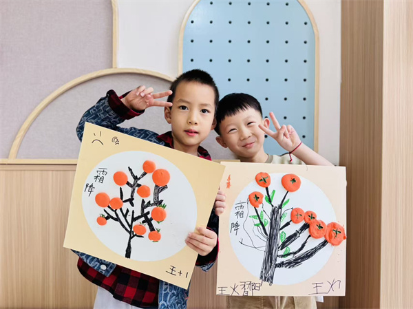 窗玻璃上凝了层薄霜,哈口气能画出小脚印,原来是霜降来了。为了让孩子们了解“霜降”,成都市双流区实验第四幼儿园(以下简称:双流区实验四幼)开展了关于“霜降”的活动,让孩子们清晰地感受物候变化,体验生活乐趣,融入自然世界。 树叶小树 霜降柿子 |