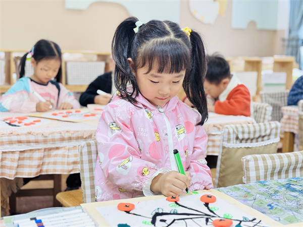 双流区实验四幼:萌娃指尖绘霜降,叶语柿香话秋凉