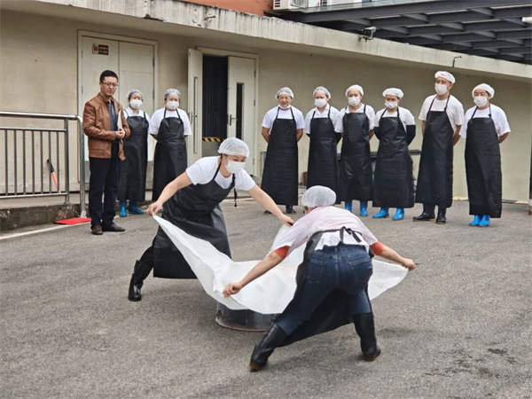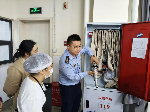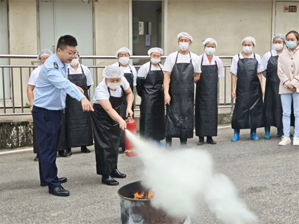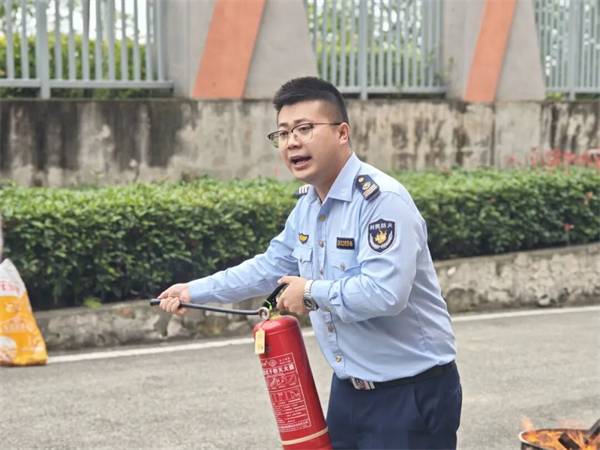 演练后:实操教学,绷紧“安全弦” 消防疏散演练结束后,王警官还对食堂职工、保洁人员、保安人员进行了现场培训。职工一同实操,在“一看、二练、三操作”中掌握灭火技能。