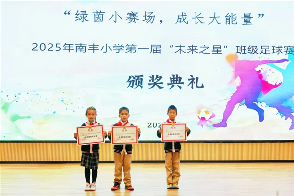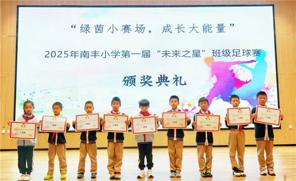 颁奖典礼 此次“未来之星”班级足球赛,不仅为孩子们搭建了释放活力、展现自我的平台,更让足球运动的种子在校园扎根发芽。未来,愿南丰小学少年们继续带着这份热爱与勇气,在更多赛场绽放光芒,书写属于自己的精彩篇章!(江蕾 通讯员 高培勋) |